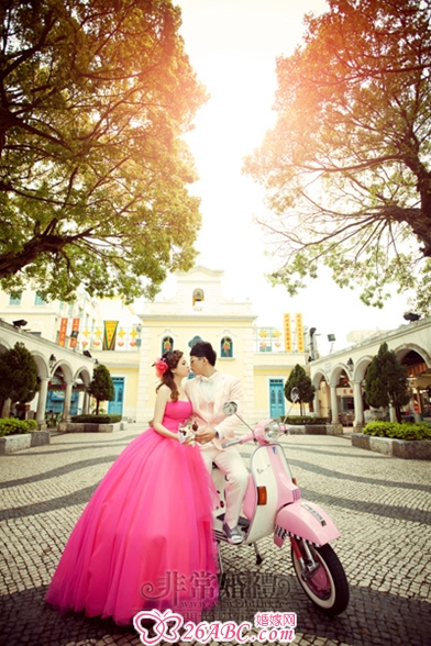 粉色记忆浪漫欧式街边摄影婚纱照