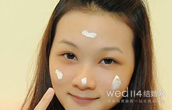 新娘妆的底妆会比较厚一点,将脸上的半点可以完全的遮住。首先上一层隔离,这样上粉底的伤害性就不会很大了。然后再上粉底,先点涂在面部,再用粉扑均匀地推散开来。